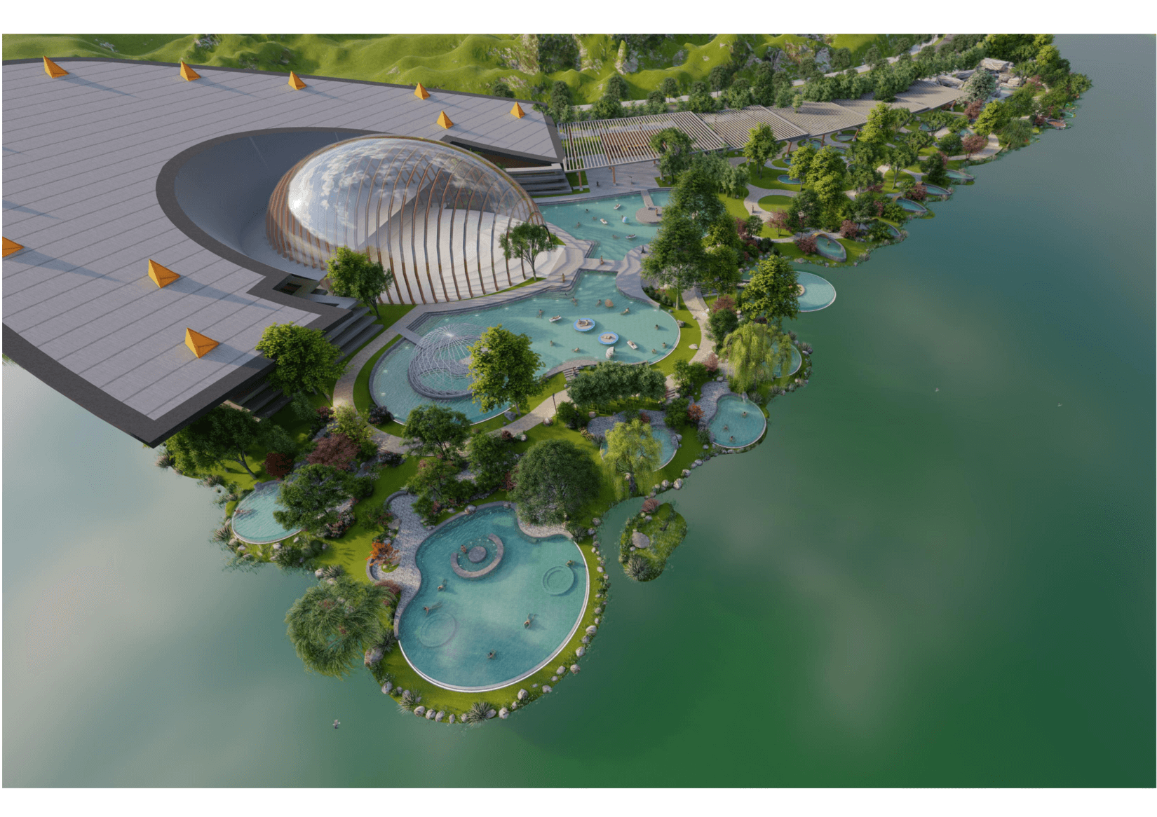 建筑規(guī)模 包含各類室外泡池25個(gè),占地20.5畝;