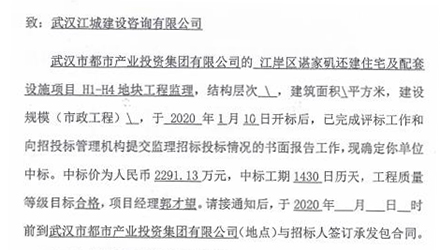 • 新年新氣象,江城喜中標(biāo) 新年新氣象,武漢江城建設(shè)咨詢有限公司于2020年1月10日投標(biāo)的 江岸區(qū)諶家磯還建住宅及配套設(shè)施項(xiàng)目 H1-H4 地塊工程監(jiān)理 項(xiàng)目,欣喜中標(biāo)!