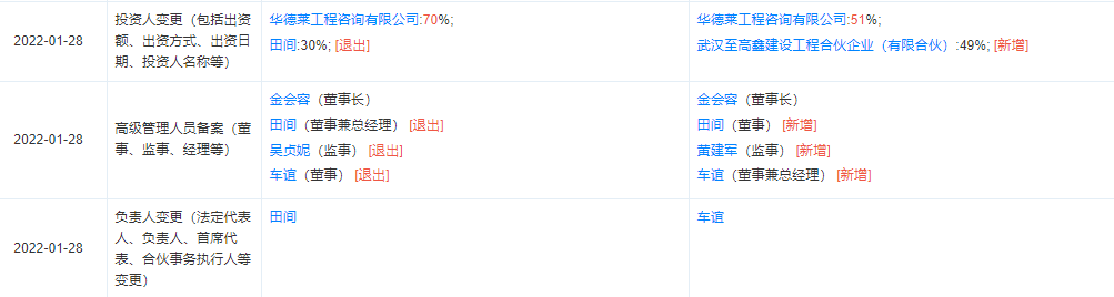 (有限合伙)占49%;華德萊工程咨詢有限公司占51%(具體變更事項(xiàng)如下);